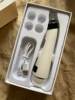 The goods came in a neat box. Includes different nozzles, a spare filter and a cord for charging. Product and store recommend.